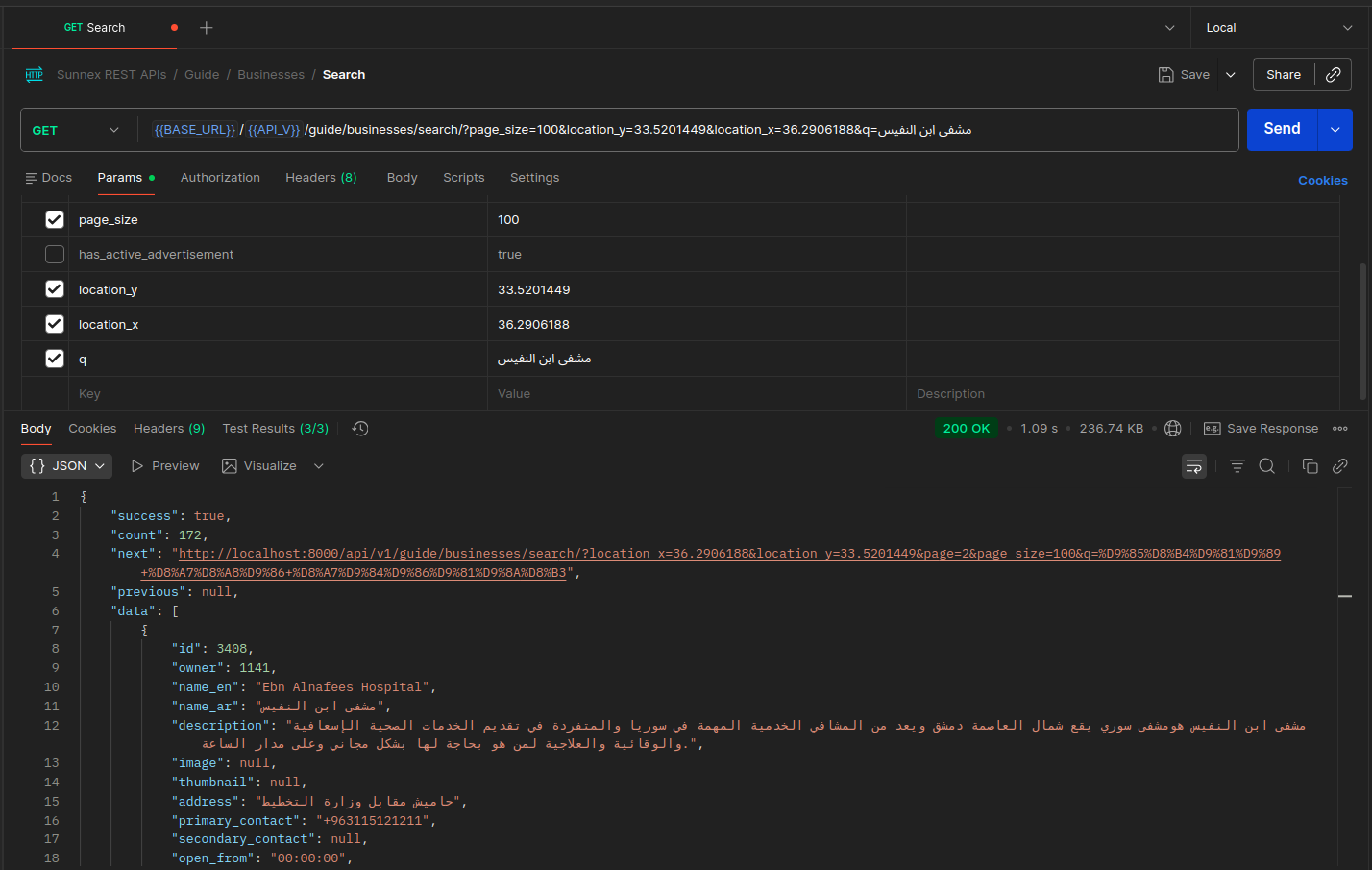 جملة البحث "مشفى ابن النفيس" طلع رقمو 12 و يلي طلع قبلو معظمهن بدايتهن كلمة ابن - تمت العملية في المكتب